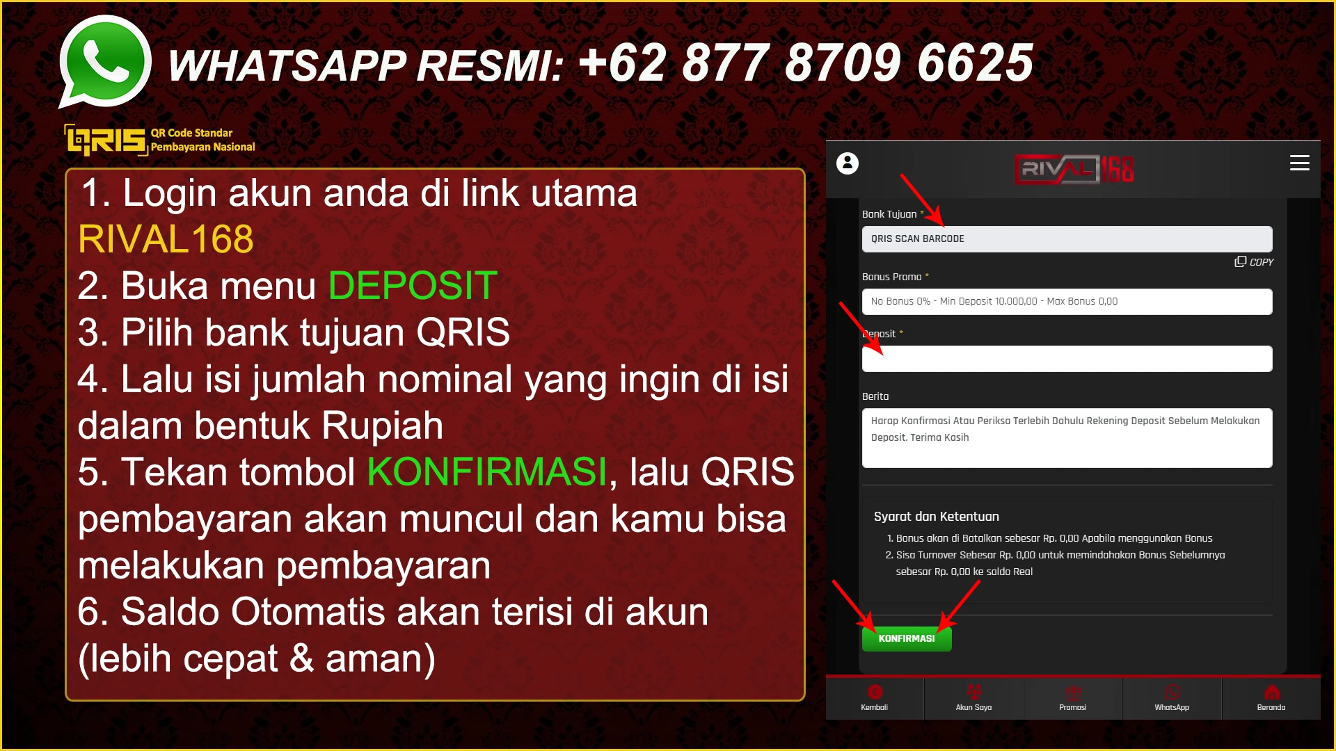 Proses transaksi di RIVAL168 menggunakan sistem otomatis, sehingga Deposit dan Withdraw hanya butuh hitungan detik. Dukungan metode lengkap: